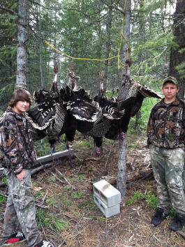 You know I love hunting but I am seriously all about turkey hunting and I really cant describe how much fun I had in the last four days. I will say this , if you head over for the last few days do not go in the woods at 4 am because the birds will gobble their butts off at you on the roost but guaranteed to leave you frustrated when they head the other way ...It was cloudy in the morning BUT when the sun came out around 10 am sh$t started to happen quickly ..I might be making it sound easy but it was knowing how to go about it ..We hardly saw any hens and the birds were all back deep in the timber so the best thing I can tell you is to get high on a ridge and try to locate where he is using a locator call or by giving a few single loud clucks and once he answers you move quickly as possible to his position without spooking him and then try to stay above him because most likely he will not come down hill.. I like to get about 100 yrds or closer before calling because you are now in his wheel house and if you play the bird right it will be fatal for the old boy.On this trip I called 10 different birds to our position in 4 days of hunting and NOT ONE before before 10 am .. when the sun came out it was a gobbling fest but I had to find the birds that were hot and wanted to play the game.. We walked our butts off but when it happened it happened fast ...The four birds we took all were 3 to 4 year old birds and all had 1 in or bigger spurs ... If we could not see hooked spurs we let them walk just because I was after the smart old boys and we did find them...If you need help or advice I will share my knowledge any time but it takes years of doing it to become and advid turkey hunter.. Main thing is taking time in the evenings roosting birds and knowing where they are and finding many as possible so you have many options to harvest ,, on this trip I roosted over 20 birds the first evening but that was running around quick as I could right at dark locating birds .. So if you go this week just sleep in to around 10 am and hunt mid day because if one gobbles he should come running .. Do not over call and use more clucks than yelps because the hens are noy yelping alot anymore but clucks with kill a turkey any time of the year.. soft suttle clucks and purrs should work well ....and  the best thing about this hunt I NEVER SAW ONE OTHER HUNTER AT ALL , not counting very few locals on the roads anywhere .... That was sweet as it gets for me ... well hope you enjoy the pictures ..and good luck if you head out for the final leg of the season....Plus we caught a butt load of trout so it was awesome ....